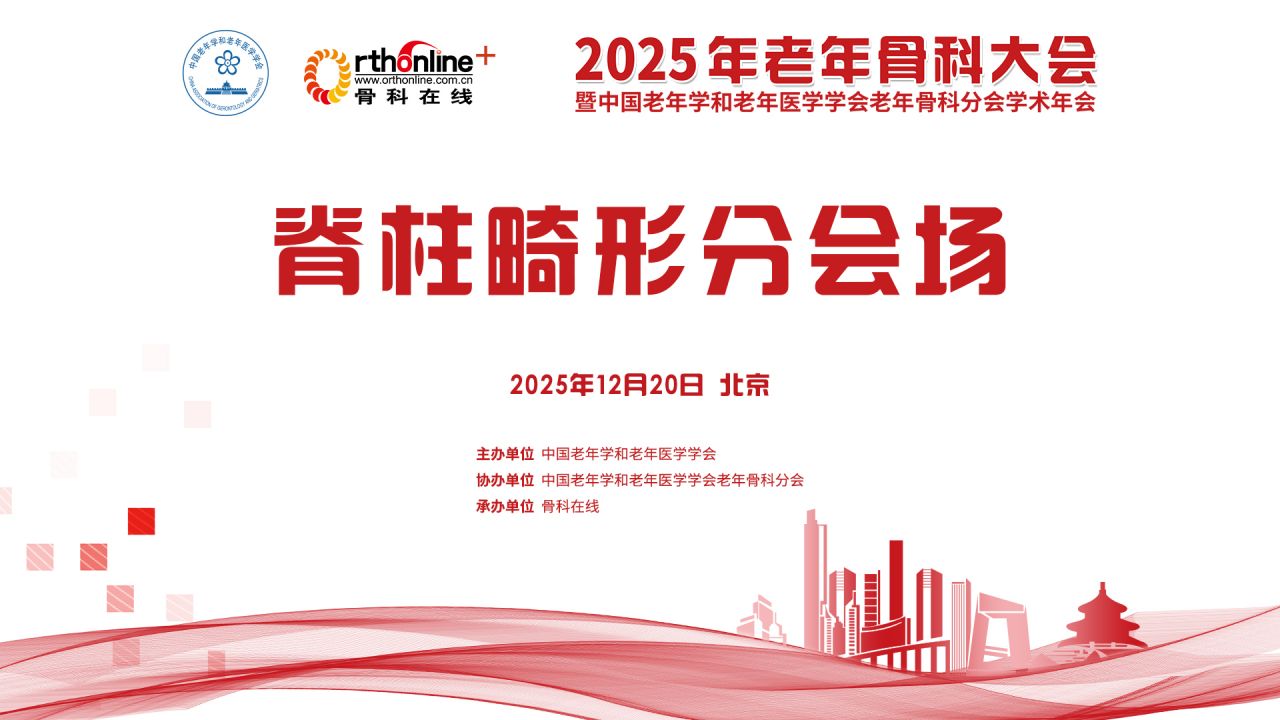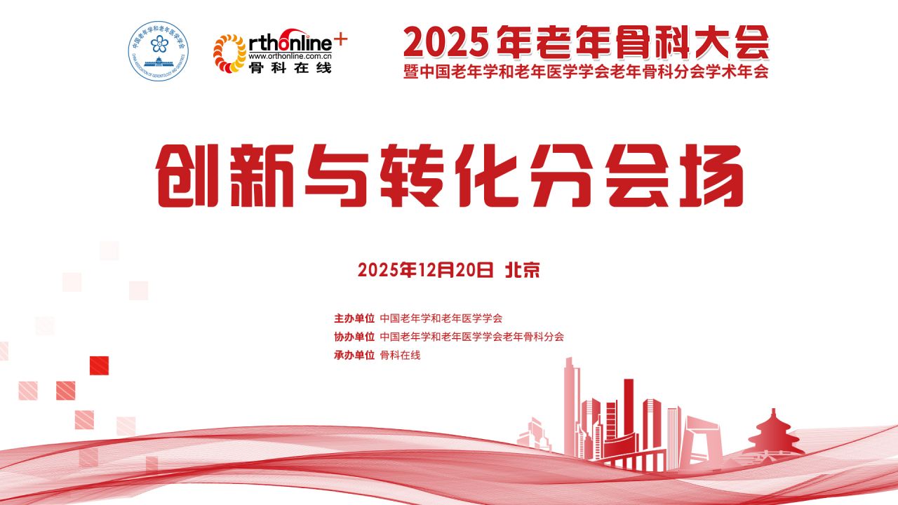 随着我国人口老龄化加剧,老年骨科疾病的发病率持续攀升,给社会和家庭带来巨大压力。为了应对这一挑战,进一步推动学术交流与合作,提高老年骨科疾病的防治水平,由中国老年学和老年医学学会主办,中国老年学和老年医学学会老年骨科分会协办,骨科在线承办的“2025年老年骨科大会暨中国老年学和老年医学学会老年骨科分会学术年会”,将于2025年12月19-20日(周五-周六)在北京举行。大会旨在搭建专业学术交流平台,聚焦老年骨科疾病防治等前沿议题,促进临床经验共享与技术创新转化,从而提升诊疗服务水平,护航老年健康。
